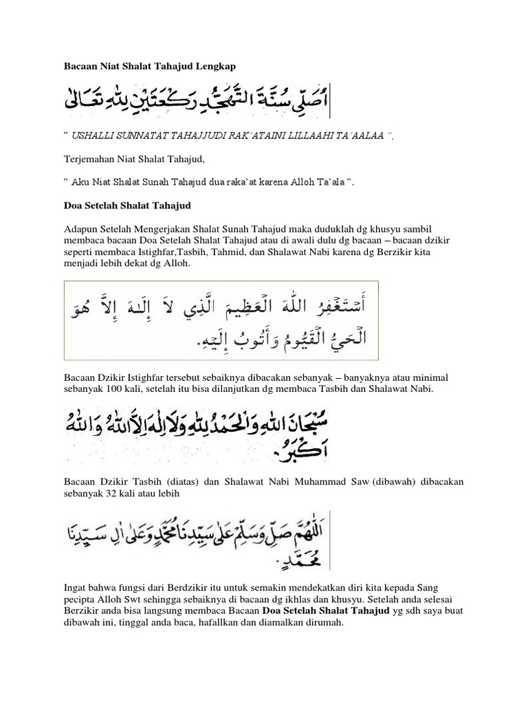 Doa setelah sholat tahajud dan witir latin dan artinya ini dibaca dalam rangka bermunajat kepada atas segala permohonan. Setelah selesai melaksanakan sholat hajat kurang lengkap rasanya jika kita langsung meninggalkan momen syahdu ini. Setelah membaca niat sholat tahajud, lakukan sholat 2 rakaat dengan 2 kali sujud dan 1 kali salam. Sama halnya dengan pelaksanaan sholat sunnah pada umumnya, sholat tahajud pun juga dilaksanakan. Pada kesempatan kali ini akan berbagi bacaan doa setelah mengerjakan shalat sunah tahajud lengkap beserta artinya. Sebab doa yang dibaca selepas sholat tahajud diyakini bakal dikabulkan allah swt. Seperti halnya doa sholat dhuha, doa sholat hajat dianjurkan untuk kita dalam rangka meminta kepada allah agar senantiasa dicukupkan semua kebutuhan kita. Padahal ini hanya dilakukan waktu malam dini. Terutama doa dari al quran dan hadits. Tata cara sholat tahajud lengkap dengan bacaan doa dan keutamaannya. Sholat tahajud adalah sholat sunnah yang dilaksanakan atau dikerjakannya dimalam hari setelahnya kita melaksanankan sholat fardu isya. Adapun doa setelah sholat tahajud, kita bebas berdoa dengan segala doa yang baik. Menurut kalangan mazhab syafi'i, waktu pelaksanaanya setelah sholat isya' dan sesudah tidur meskipun.